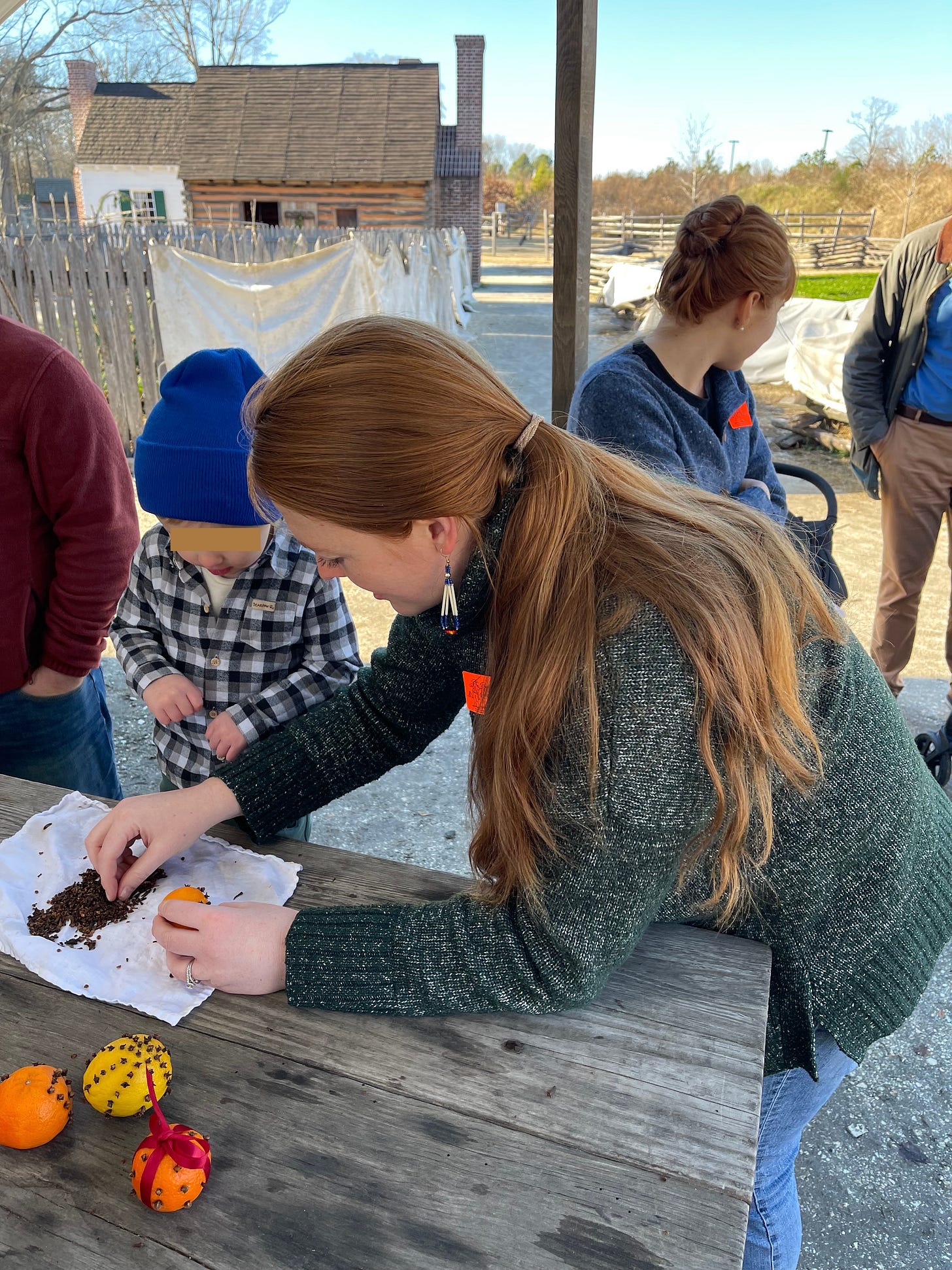 Finally, we visited Yorktown with some dear friends this past weekend and the American Revolution Museum at Yorktown had a hands-on period-correct demonstration of making clove oranges! This was loads of fun and we will be doing this at home today.